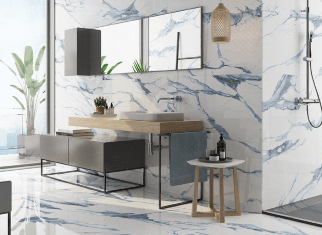 Finally, if you have more budget to spare, you can install large bathroom tiles to make the space appear bigger than it is. Mostly, large bathroom tiles will help enhance the visual flow in your bathroom – but other practical features aid in making the space appear bigger. For example, with large tiles, there are fewer grout lines, which minimises obstructions and interruptions from the floor to the walls. They can also help to reflect light, making the room appear brighter.